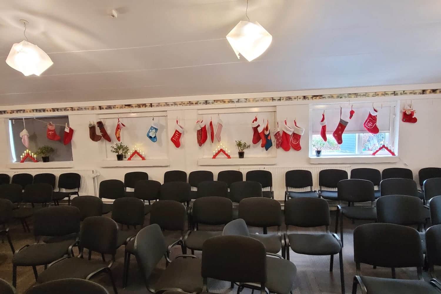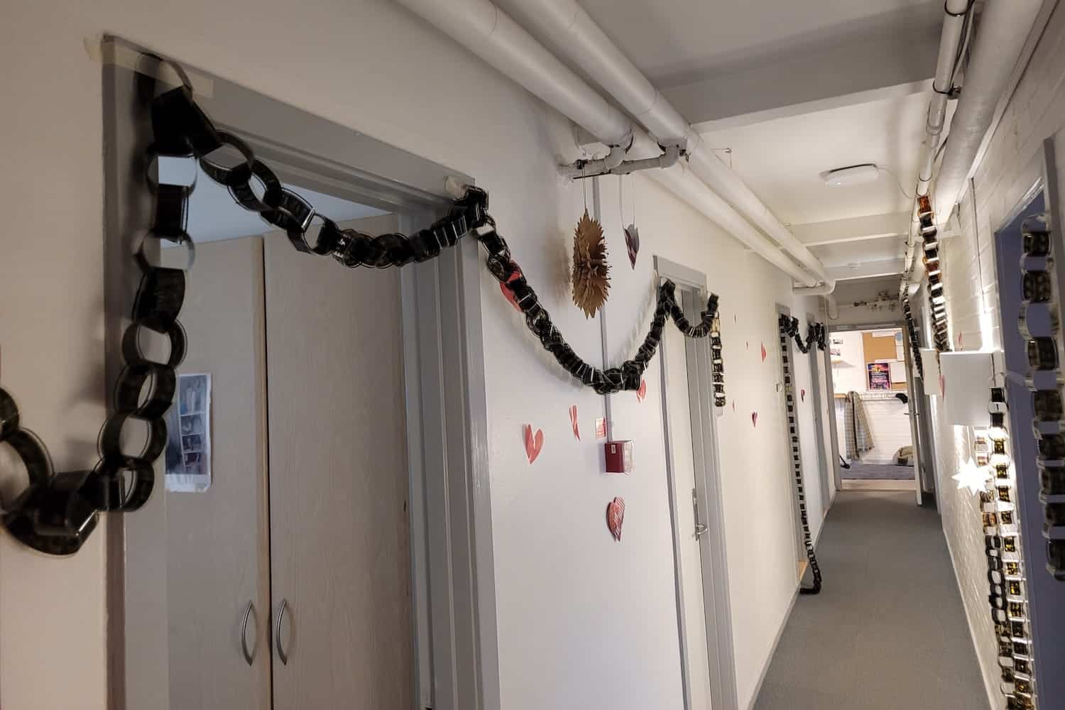 I december måned har julestemningen indtaget Efterskolen Ådalen. Skolen er både indvendigt og udvendigt pyntet op med bl.a. store kravlenisser i træ, guirlander og papirklip i alle kroge og på vinduerne.